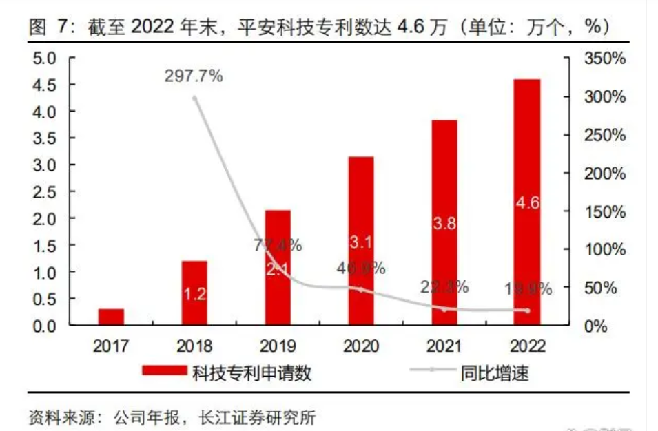 中国平安,人工智能专利数位居全球第一。根据中国平安年报披露,截至 2022 年末, 中国平安科技专利申请数 46077 项,位居国际金融机构前列;其中发明专利申请数占比 近 95%,PCT 及境外专利申请数累计达 9335 项。公司在人工智能、金融科技和数字医 疗业务领域的专利申请数排名均为全球第一位。2020 年,平安在人工智能方面同时获 得 SQuAD2.0 及 GLUE 两大赛事国际第一1。