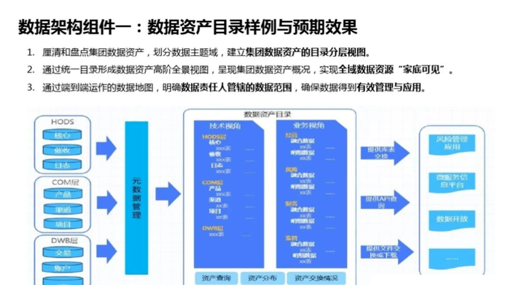 数据资产目录是数据架构的基础,它列出了企业所有的数据资产,包括数据的来源、类型、格式、用途等。数据资产目录有助于企业清晰地了解自身的数据资源,为数据的利用和管理提供依据。
