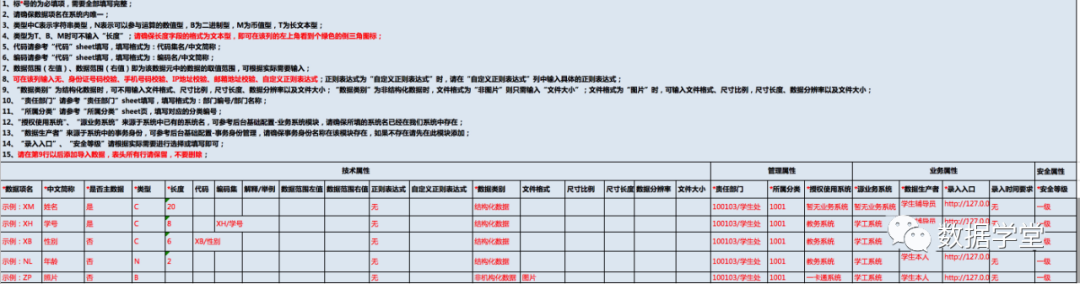 下图为某高校的数据标准模版表,面向企业的可以参考: