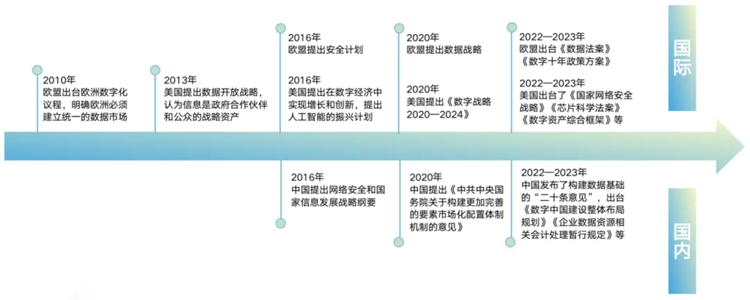 当今时代,数字技术、数字经济是世界科技革命和产业变革的先机,深度驱动产业转型升级,数据要素的基础资源和创新引擎作用已成为共识。我国是首个将数据列为生产要素的国家,党的十九大以来,中共中央和地方政府高度重视数字经济高质量发展和数据作为新型关键生产要素的价值,将“激活数据要素潜能”写入十四五规划。