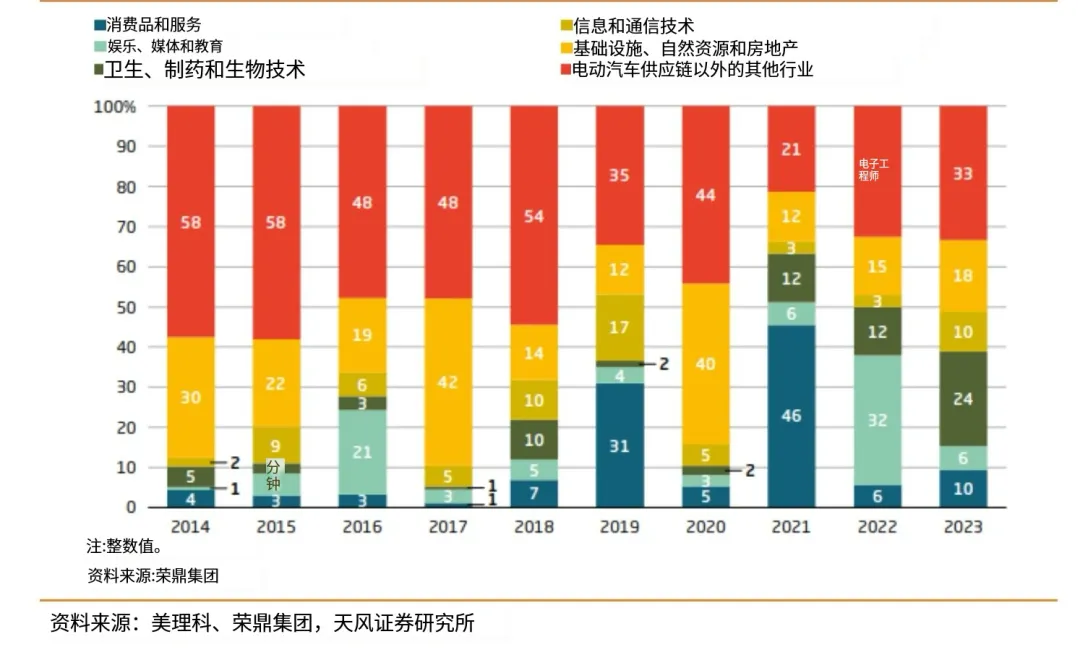 中国企业在欧洲市场的表现日益突出,不仅在传统制造业领域继续巩固市场地位,还在新能源、科技创新等新兴领域展现出强劲的增长势头。近年来,中国企业出海欧洲的浪潮持续高涨,其中电动汽车领域尤为引人注目。2023年,中国对欧洲电动汽车领域的投资达到了47亿欧元,较2022年增长了约60%,占据了中国对欧总投资的约70%,充分显示了电动汽车行业已成为中国对欧投资的新焦点。