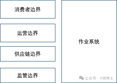 业务运营系统中企业员工承担业务作业的执行角色,从安全边界的维度而言,与企业安全边界相同,只不过相对于企业应用系统,业务应用系统是消费者和企业员工共同参与的应用系统,如果未做服务的拆分和边界的管理,应该执行不同可验证控制检查点的运营界面像消费者界面一样暴露在互联网,将增加运营系统的安全风险。