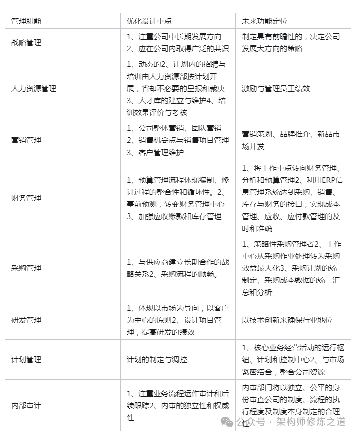 管理流程规划应包括对以下8个管理职能的业务流程设计和优化。具体为: