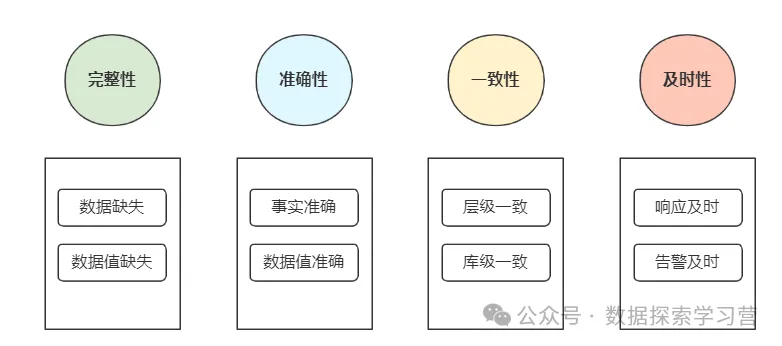 一般采用业内常用的标准来衡量数据质量的好坏:完整性、准确性、一致性和及时性。