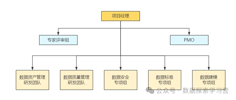一般在数据治理建设初期,集团会先成立数据治理管理委员会。从上至下由决策层、管理层、执行层构成。决策层决策、管理层制定方案、执行层实施。层级管理、统一协调。