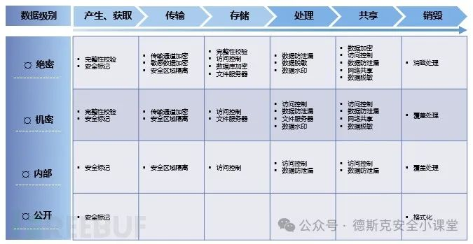 不同级别数据全生命周期安全管控策略;分为绝密、机密、秘密、公开