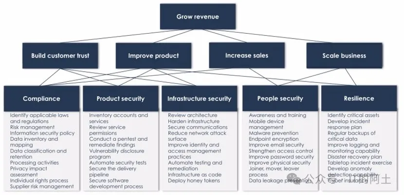 信息安全专家leron提出安全应该内生支持业务发展,基于风险的方法,保护重要资产降低威胁,他提出安全是为客户提供顺畅体验的产品和服务的基础,并认为脆弱的产品,错误配置的基础设施,不安全的运营,不完善的合规以及无法抵御事件的能力,是阻碍企业实现目标的核心要素。