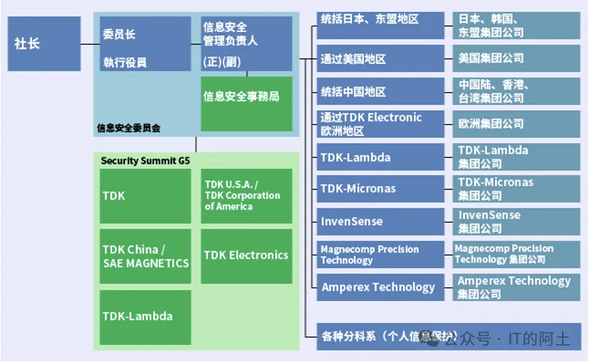日本TDK设置直属于执行委员会的“信息安全委员会”,针对整个集团的信息安全,采取相应的应对风险措施。由全球各地区代表设置会议机构,强化全球的信息安全管理。对于各部门,通过召开信息安全管理者会议等,力求推进措施的开展实施。