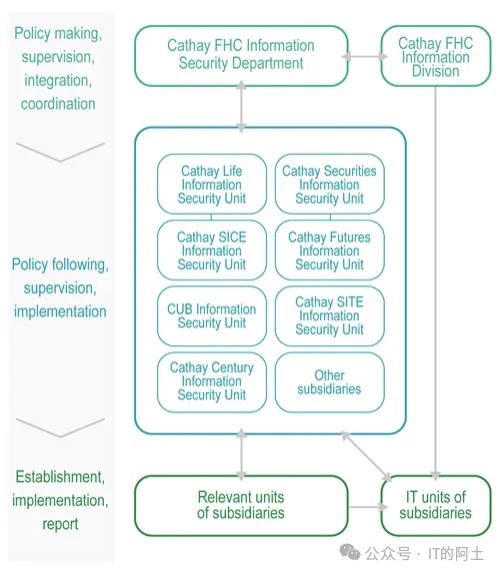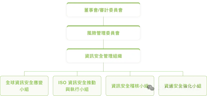 国泰金控及其附属公司均设有独立的信息安全部门和监督人员,负责规划、监控和实施信息安全管理。每年向董事会报告上一年度信息安全的实施情况。信息安全委员会是一个跨职能委员会,负责制定信息安全政策,并在集团层面推广管理体系。为进一步促进国泰金控及其附属机构之间的有效跨职能沟通和一致的信息安全管理,国泰金控及其附属公司成立了跨职能信息安全沟通委员会,以进行信息安全监控和质量提升。
