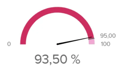 指实时发生的业务交易或状态变化。准确性应通过源文档(即来自业务交互)来衡量,但如果不可用,则应通过独立性质的确认技术来衡量。它将指示数据是否没有重大错误。衡量准确性的一个典型指标是数据与错误的比率,它跟踪相对于数据集的已知错误(如缺失、不完整或冗余条目)的数量。这个比率当然应该随着时间的推移而增加,证明数据质量会变得更好。数据与错误的比率没有特定的比率,因为它在很大程度上取决于数据集的大小和性质,但当然越高越好。在下面的示例中,我们看到数据错误率刚好低于95%的准确率目标: