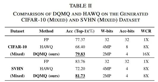 (4)在ImageNet、CIFAR – 10和SVHN 上的大量实验表明,DQMQ可以获得比SOTA混合量化方法更优越的性能。