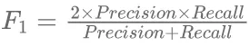 (7)当结果中所有的样本全部被预测为正样本时,即标注者将所有的目标对象都标注为同一个类别时,召回率为100%,因为召回率仅仅关注正样本的情况。F1分数调和了召回率和精准率之间的缺点,综合了两者的结果,如公式(8)所示。