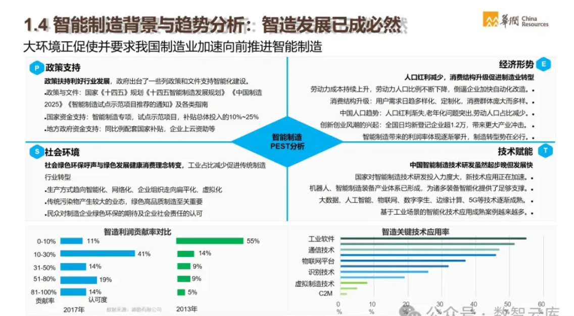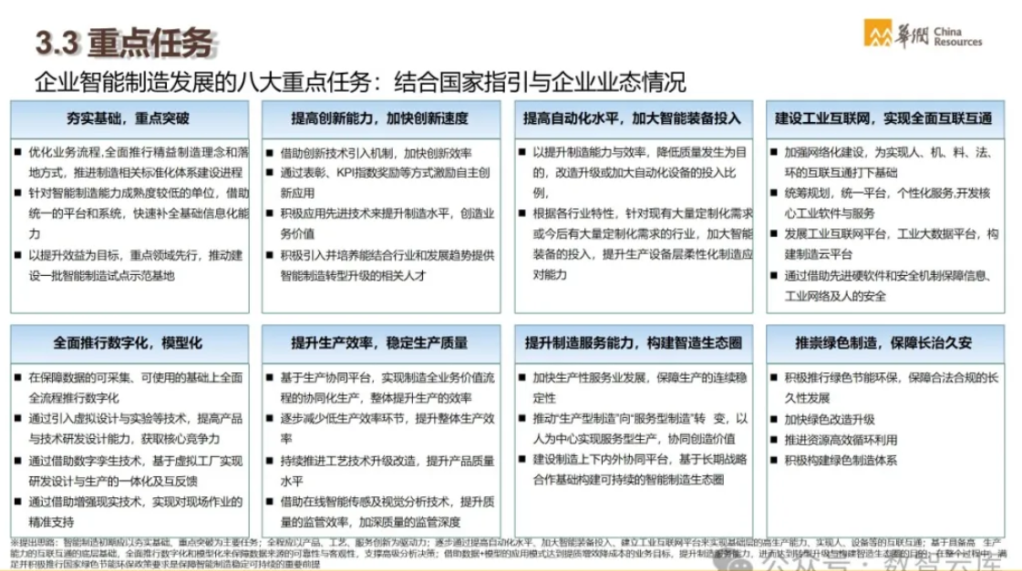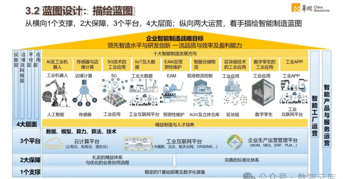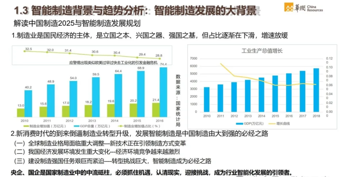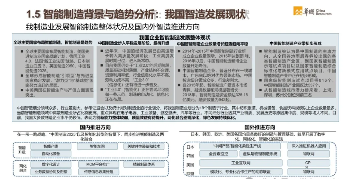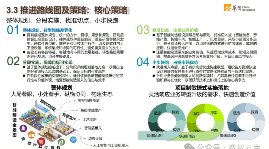 - 解决方案:华润通过建设统一的技术平台,如华润云、工业互联网平台等,提供全面的智能制造解决方案。