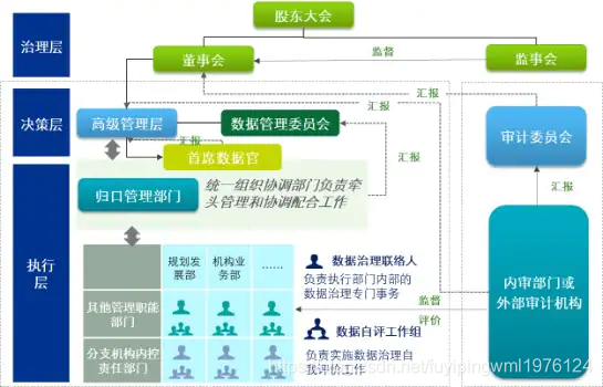 目前监管明确要求银行设置数据治理归口管理部门,下图以“归口管理模式”为例进行了示例: