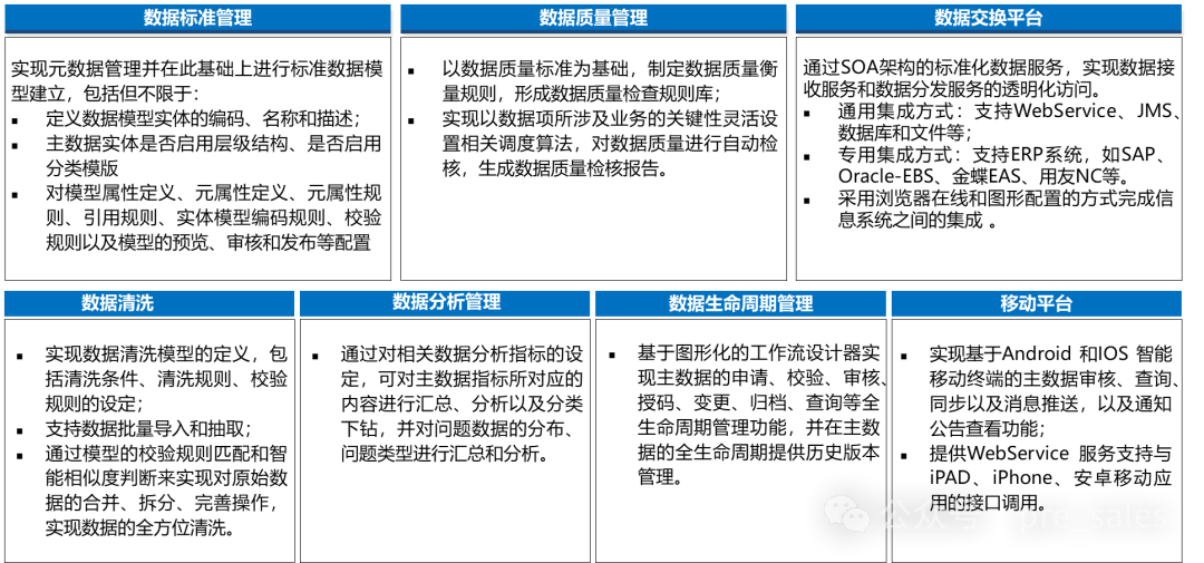 - 全生命周期管理:从数据采集、申请、审批、创建、发布到维护和使用,建立完整的主数据管理流程体系,确保数据的准确性和时效性。
