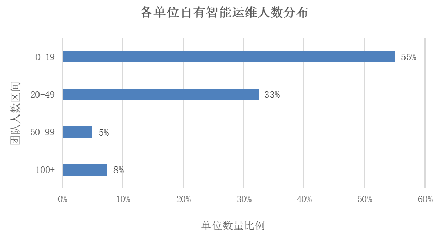 智能运维有关的外包人员数量集中在0-19人这个区间,作为一个小型团队,这也反映出多数组织已完成对应探索开始进入试点应用阶段。