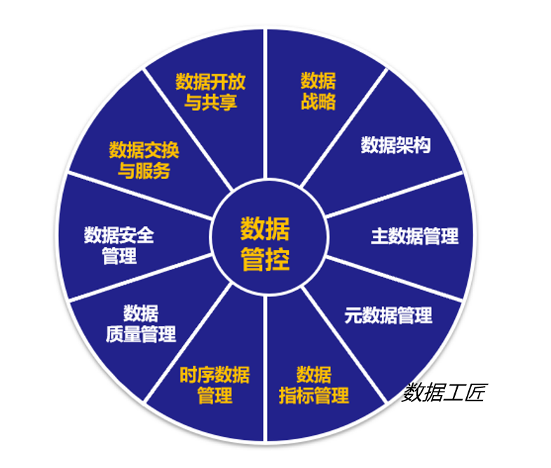本体系架构以数据管控为核心,通过数据管控统领数据治理的10大职能领域,包含数据战略、数据架构、主数据管理、元数据管理、数据指标管理、时序数据管理、数据质量管理、数据安全管理、数据交换与服务、数据开放与共享。