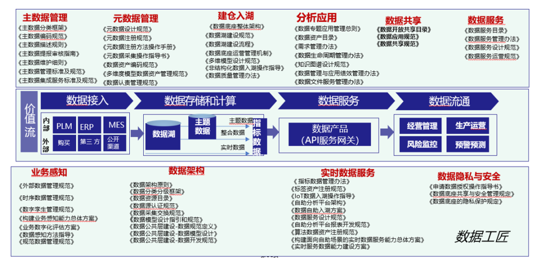 (1)结合DCMM及行业标杆企业的最佳实践经验,形成了具有行业特色的工业企业数据治理体系。