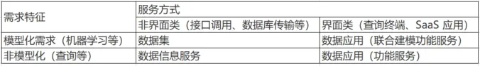 - 1)分析目标客户的数据需求和应用场景(模型化需求、非模型化需求)。