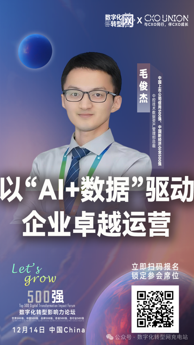 ——中国上市公司信用500强、中国新经济企业500强企业中控技术数据资产管理部总裁、浙江中控数智科技有限公司副总裁毛俊杰