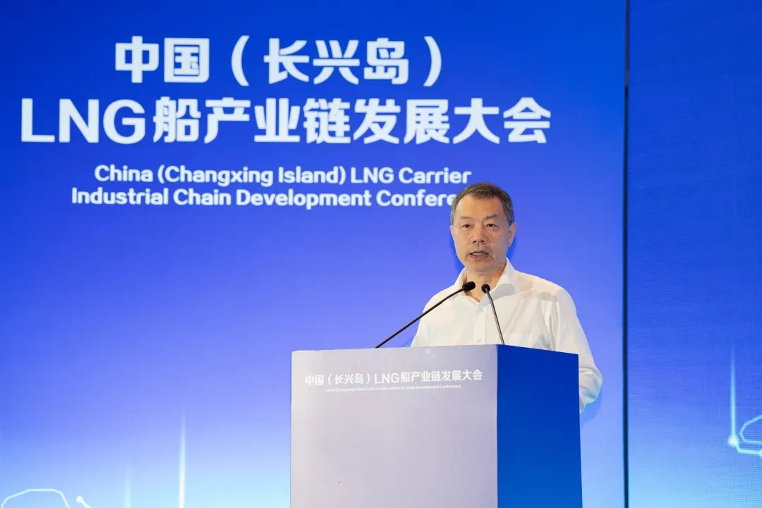 中国船舶集团有限公司总经理助理许淼在致辞中指出中国船舶集团是我国海军装备建设的主体力量、全球造船业发展的引领力量、建设海洋强国的支撑力量,是世界第一大造船集团。2019年重组整合以来,船舶海工主业竞争优势更加巩固,造船完工、新接订单和手持订单三大指标连年稳居世界第一。目前,集团公司已有沪东中华、江南造船两家总装船厂等多家单位聚集长兴岛。希望这些单位在长兴岛未来发展中发挥积极引领推动作用,与驻长兴岛业界单位一起,携手打造高端船舶海工装备产业集聚地,扎实推进LNG船等船舶海工装备创新发展,助力建设造船强国和海洋强国,为我国船舶工业高质量发展贡献更多智慧和力量。