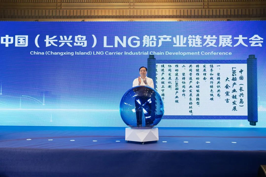 同时,大会还见证了LNG特色产业园的建立,宣布成立中国(长兴岛)LNG船产业联盟。上海市经信委总工程师裘薇、上海市崇明区副区长徐慧泉为LNG特色产业园揭牌,上海市政府副秘书长庄木弟发布《中国(长兴岛)LNG船产业链发展大会宣言》。