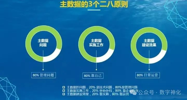 主数据管理的问题只有20%属于技术问题, 80%其实仍然是的管理问题。也就是说,软件能解决的,只是一部分问题,更关键的,是必须结合企业的内部管理。