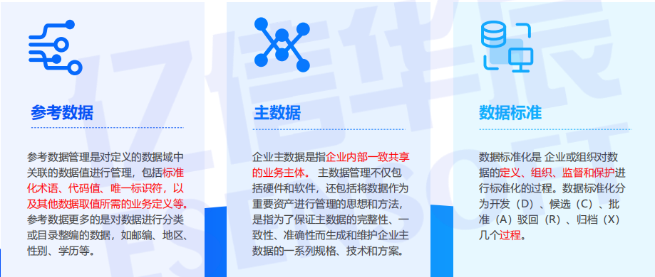接下来,小编将阐述几个容易混淆的概念:参考数据、主数据以及数据标准。