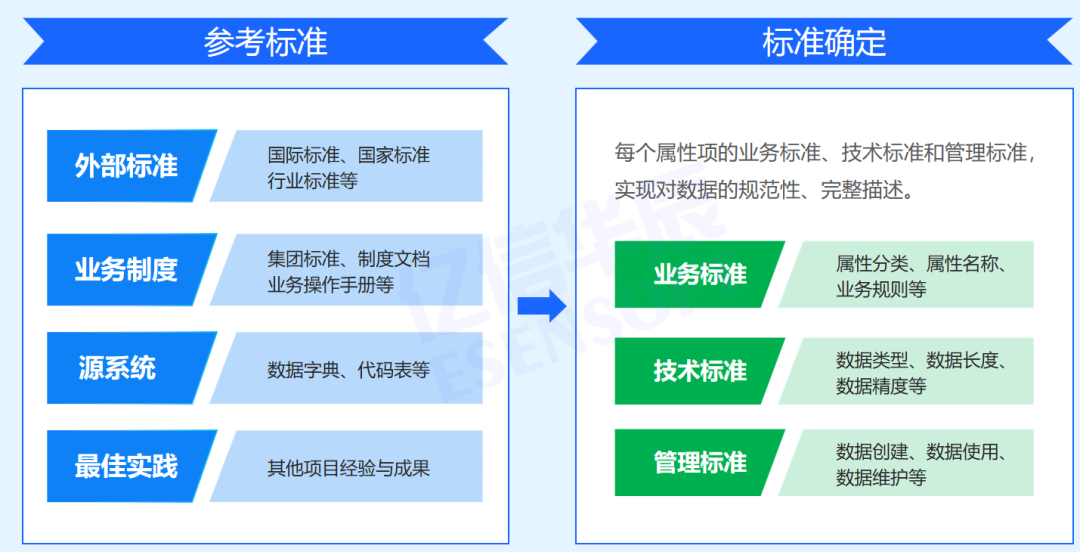 在主数据详细设计阶段,首要关注的是主数据标准的制定。这一过程的制定通常基于多方面的参考,包括外部标准、集团业务制度、源业务系统数据字典、代码表以及行业内的最佳实践项目,同时结合企业自身的管理要求进行全面梳理。这些标准可细分为业务标准、技术标准和管理标准。