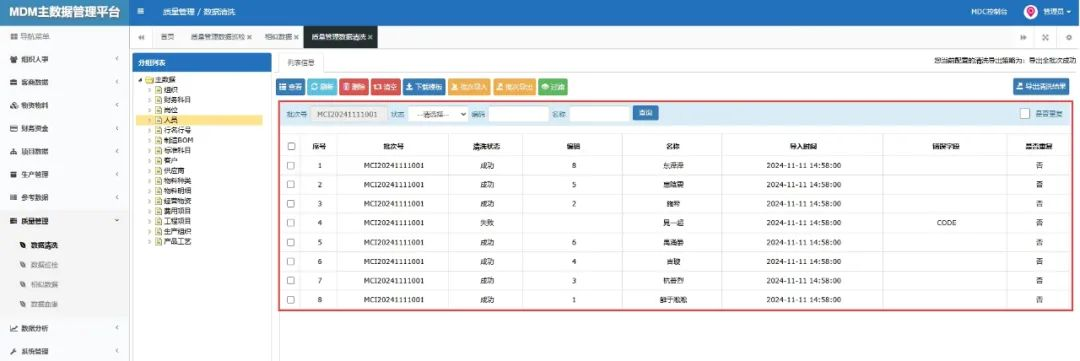 在MDM主数据管理平台中,数据管理是实现基础数据治理的核心环节之一。通过数据管理功能,企业能够对核心数据进行集中管理、标准化和优化,从而确保数据的质量和一致性。