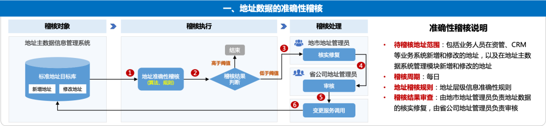 主数据作为“黄金数据”是企业的核心数据资产,主数据质量的好坏决定了数据价值的高低,因此要建立一套主数据质量的运维体系,确保及时发现主数据的质量问题并闭环解决,如下示例了地址主数据的自动稽核流程:数字化转型网www.szhzxw.cn