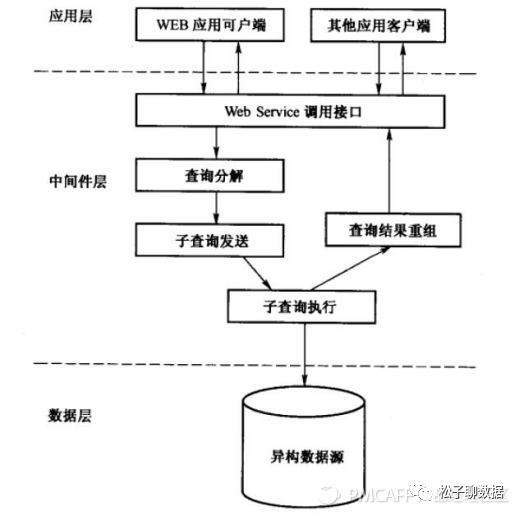 典型的基于中间件的数据集成系统主要包括中介器和包装器,其中每个数据源对应一个包装器,中间件通过包装器和各个数据源交互。中介器的功能是接收针对全局模式生成的查询,根据数据源描述信息及映射规则将接收的查询分解成每个数据源能够处理的子查询,再将子查询发送到每个数据源的包装器。
