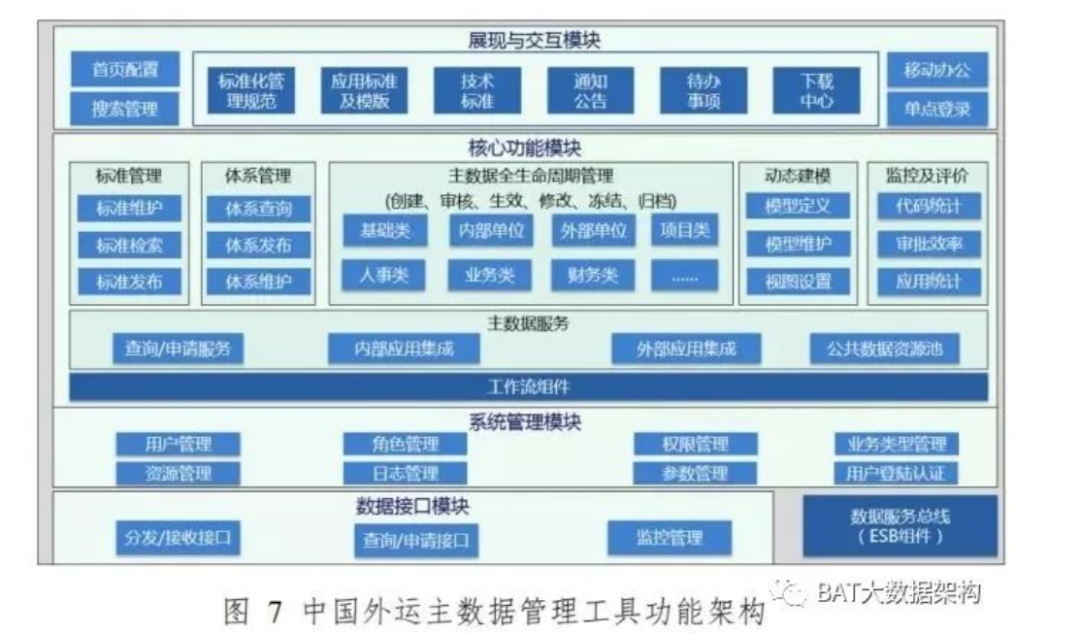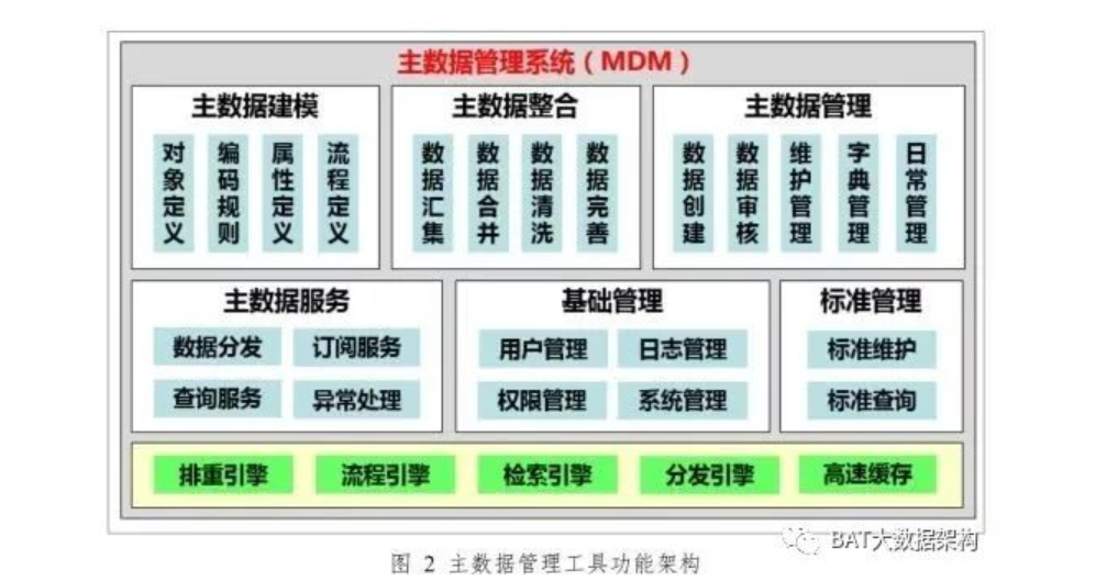 主数据管理工具主要包括数据建模、数据整合、数据管理、数据服务基础管理、标准管理等功能模块。