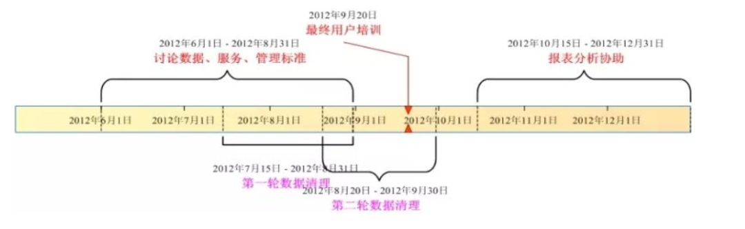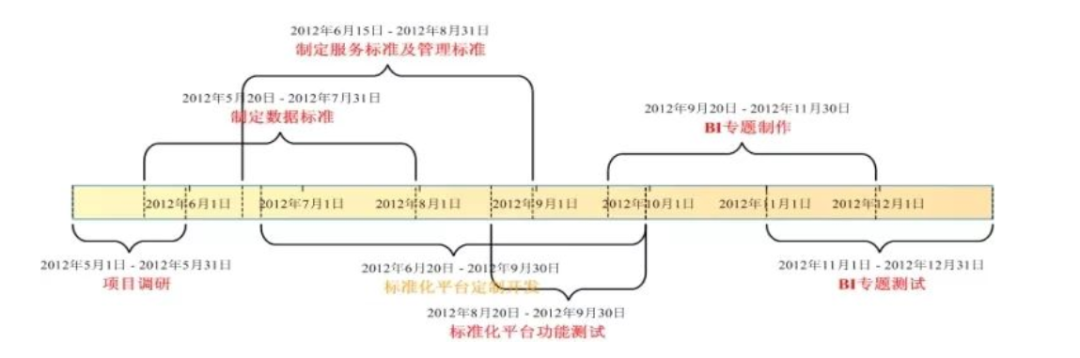 主数据管理涉及到企业最核心的业务流程、交易数据和数据资产,关系到企业生产经营的方方面面。所以注定主数据管理的实施建设是一个持续长期的过程,结合业内的实施经验,主数据管理项目的实施策略一般为:整体制定标准、分步建设系统、先基础、后深化。上文提到主数据实施要点主要包含主数据规划、制定主数据标准、建立主数据代码库、搭建主数据管理工具、构建运维体系及推广贯标六大部分,结合到实际具体项目过程中,则需要将主数据管理和项目过程管理的知识与经验结合起来。下面是对某个主数据实施项目的项目过程阶段划分和实施计划安排。该项目主要分为三个阶段。第一阶段:主要工作内容包括标准化制定、主数据平台基本模块建设、数据初始化清理与导入等;第二阶段:主要工作内容包括完善主数据平台建设、部分系统对接、数据监控与统计分析等;第三阶段:主要工作内容包括扩大主数据范围、接入更多系统、信息展示层建设等;以下是主数据项目实施计划实例:数字化转型网www.szhzxw.cn