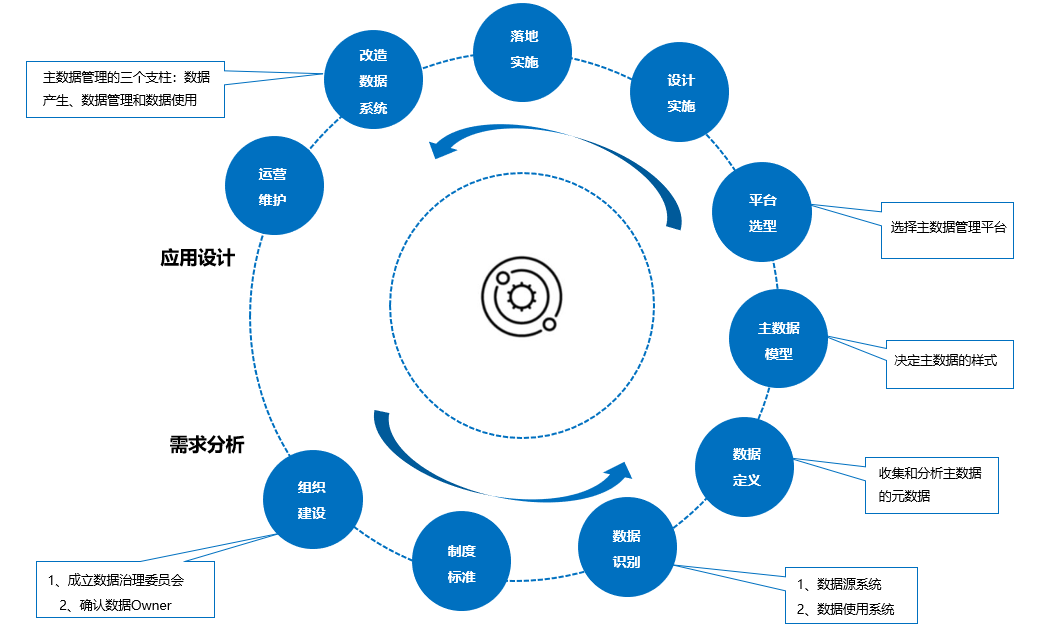 主数据管理的原始需求是不明确、且不断变化与增加的,建设者最初不能确切了解到用户的明确详细的需求,用户能提供的无非是需求的大方向以及部分需求,更不能较准确地预见到以后的需求。主数据管理系统一个经过不断循环、反馈而使系统不断增长与完善的过程。
