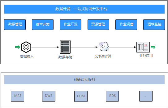 DataArts Studio数据开发是一个一站式敏捷大数据开发平台,提供可视化的图形开发界面、丰富的数据开发类型(脚本开发和作业开发)、全托管的作业调度和运维监控能力,内置行业数据处理pipeline,一键式开发,全流程可视化,支持多人在线协同开发,支持管理多种大数据云服务,极大地降低了用户使用大数据的门槛,帮助用户快速构建大数据处理中心。