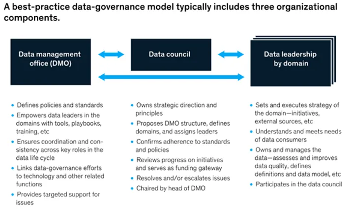 麦肯锡数据治理框架专注于通过将数据管理实践与业务目标相结合来从数据中创造价值。该框架强调自上而下的方法,高层领导负责数据治理,并将数据视为战略资产。麦肯锡的框架特别注重通过强有力的治理政策改善数据驱动的决策和竞争优势。数字化转型网www.szhzxw.cn