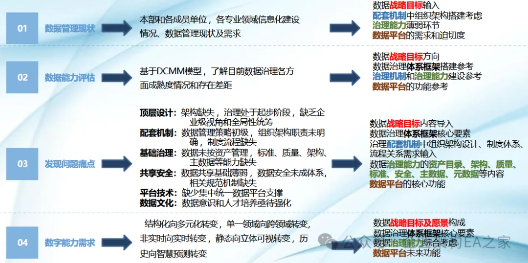最后,随着企业的不断发展,数据能力的需求也会发生变化。在第四步中,企业需要考虑未来数字化转型的需求,确保数据治理体系能够支撑企业向更高的数字化层次发展。未来的需求主要包括: