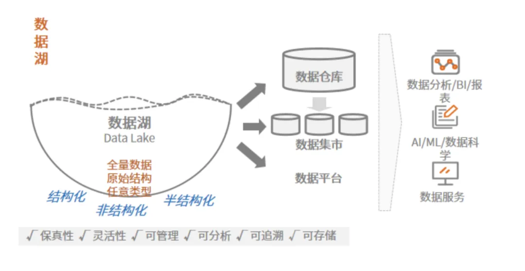数据湖:可以实现实时或近实时地接收和存储数据,能够快速获取和存储最新的数据,对于需要实时分析和处理数据的场景具有优势。数字化转型网www.szhzxw.cn