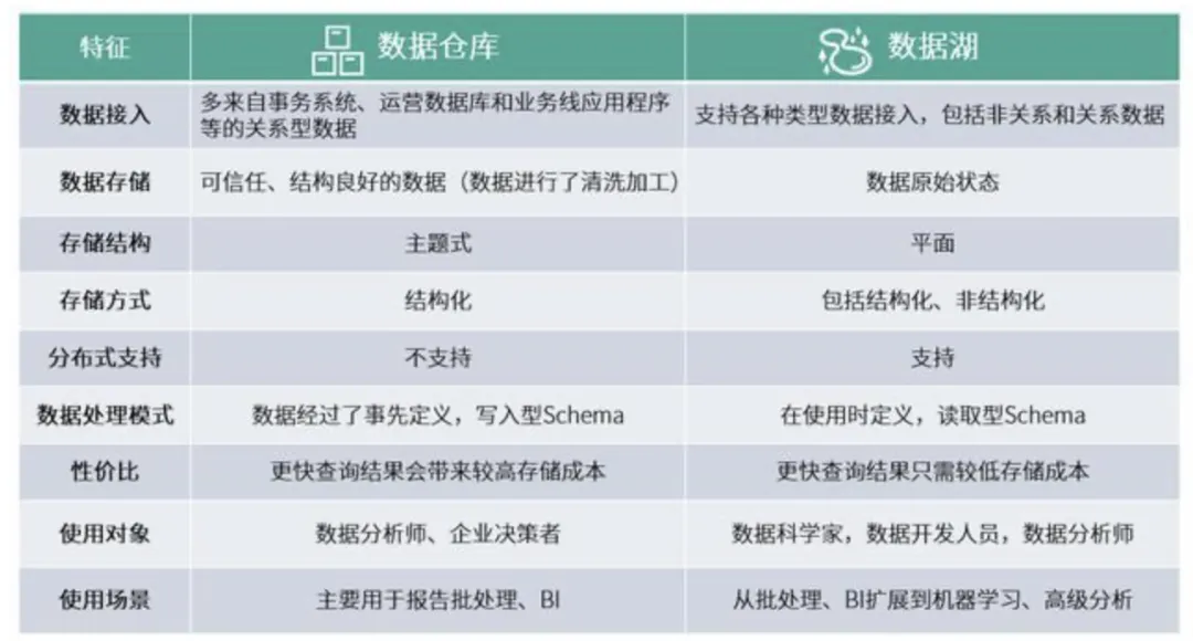 数据湖:通常可以利用开源技术实现,使用成本较低的服务器和存储,具有较高的成本效益。但是,如果数据湖的规模非常庞大,管理和维护的成本也可能会增加。