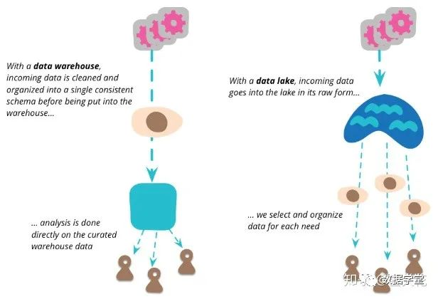 1)数仓中保存的都是结构化处理后的数据,而数据湖中可以保存原始数据也可以保存结构化处理后的数据,保证用户能获取到各个阶段的数据。因为数据的价值跟不同的业务和用户强相关,有可能对于A用户没有意义的数据,但是对于B用户来说意义巨大,所以都需要保存在数据湖中。