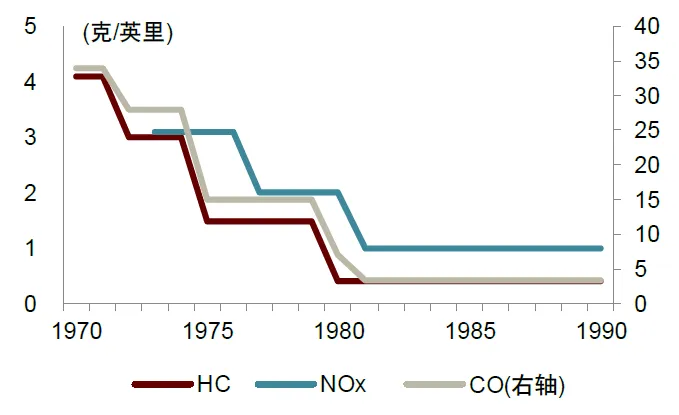 转机二:环保趋严提出新的技术要求。20世纪60-70年代,随着美国私家车不断普及,汽车带来的环境污染愈发严重,公众的环保意识开始觉醒,美国国会相继通过《清洁空气法》和汽车燃油经济性标准。日系车企严格执行环保标准,形成技术领先优势。1972年,本田发布CVCC发动机,成为全球首台满足马斯基法案的发动机,燃油经济性超过40mpg。马自达改良德国NSU的转子发动机技术,1973年成功进入美国市场。