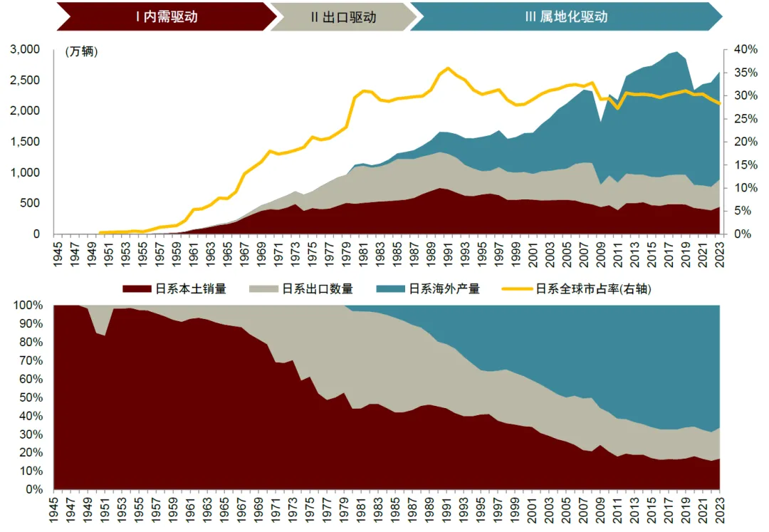 回顾日系车企开拓美国市场的历程,初期以产品出口为主,最高突破300万辆;20世纪80年代中期以后,汽车出口转弱,属地化生产逐步成为主流,带动日系在美销量突破500万辆。我们总结日系车企通过三次“转危为机”,成功立足美国市场,市场份额实现突破。数字化转型网www.szhzxw.cn