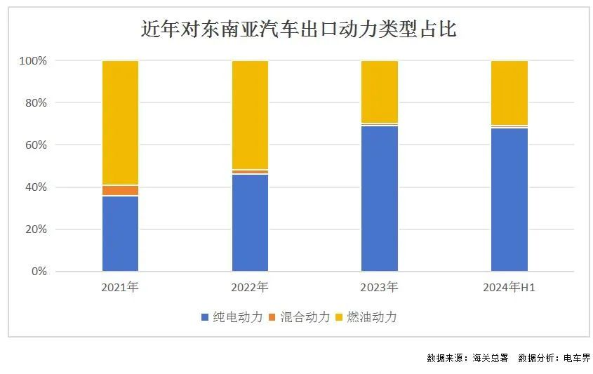 对东南亚出口方面,以纯电动力为主。2024年上半年对东南亚出口纯电汽车均价是全球最低的。