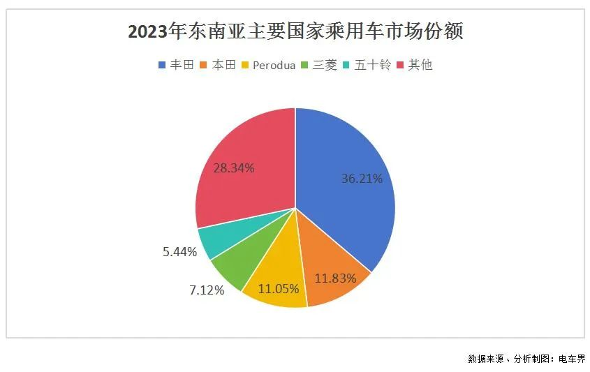 2023年,比亚迪纯电车凭借价格优势和成熟的分销渠道,拿下东南亚主要国家新能源乘用车的最大市场份额。