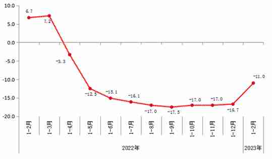 分行业看,1-2月,在37个工业大类行业中,13个行业增加值比上年同期增长。主要工业行业中,电力、热力生产和供应业增长10.3%;专用设备制造业增长9.7%;汽车制造业下降2.0%;通用设备制造业下降9.3%;计算机、通信和其他电子设备制造业下降15.3%;医药制造业下降45.2%。