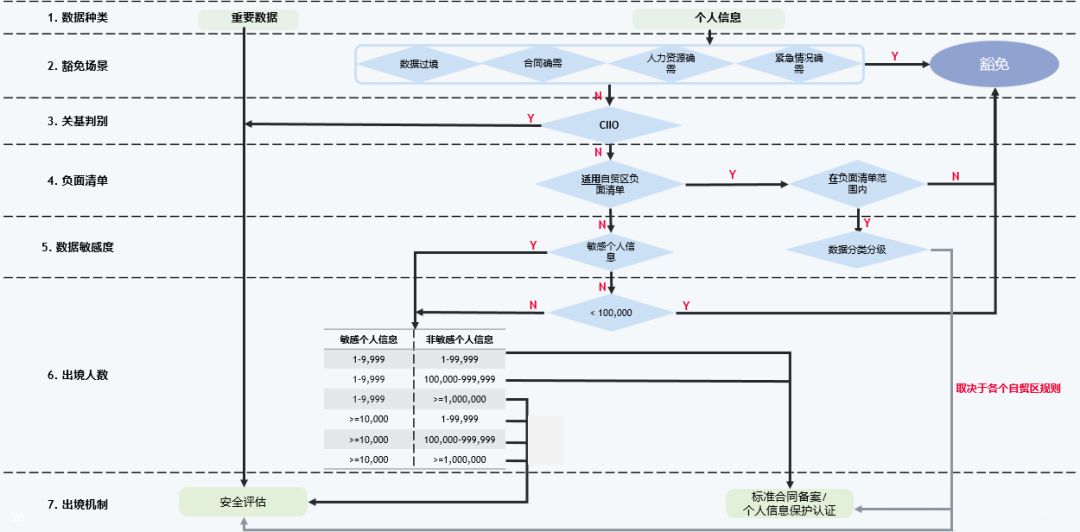 根据数据资产盘点的结果,企业可结合业务流程及需求,合理定义需要申报的数据出境业务场景。一般来说,根据汽车业务环节,可以分为销售管理场景、售后保修场景、产品质量调研场景、汽车记录分析场景等;根据企业内部管理环节,可以分为合同管理场景、薪酬管理场景、绩效管理场景等。这里需要注意的是,虽然《促进和规范跨境数据流动规定》对人力资源管理场景作出了豁免,但是仅限于劳动法框架下的人力资源管理,涉及派遣、实习、员工家属等情况的跨境,并不必然可以豁免。