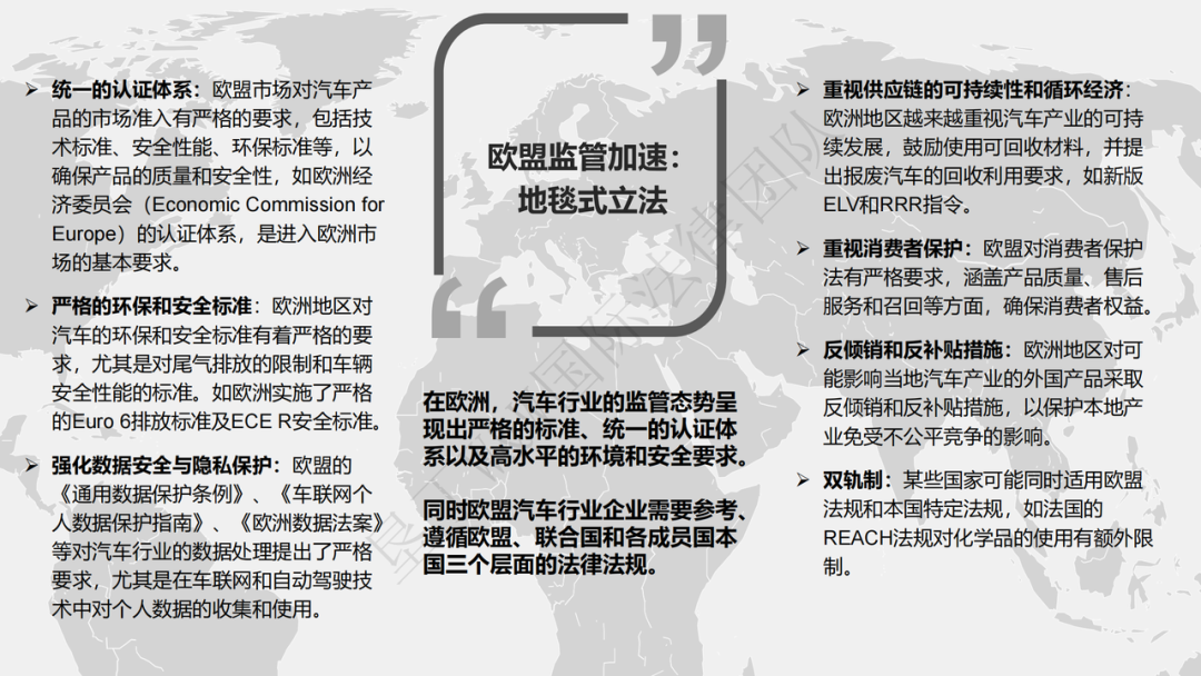 出海车企在海外扩张中面临的法律风险主要包括目标国市场准入认证、知识产权保护、贸易壁垒、舆情管理、数据合规、税务合规、供应链管理、品牌推广合规等方面。王捷律师强调,出海车企需对目标国家的法律环境有深刻理解,尤其在欧盟、美国、东南亚等关键市场,必须遵循严格的标准和法规。