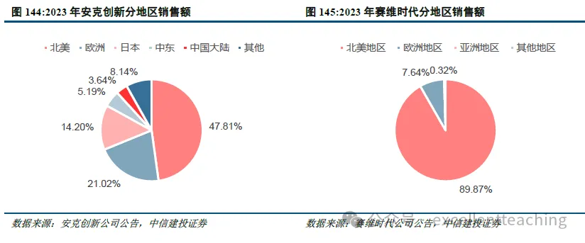 对于中国企业而言,美国、欧洲等发达国家的市场规模庞大并且消费力强,因此欧美仍是重要出海目的地。跨境电商企业安克创新、赛维时代在北美销售占比分别为 48%和 90%。