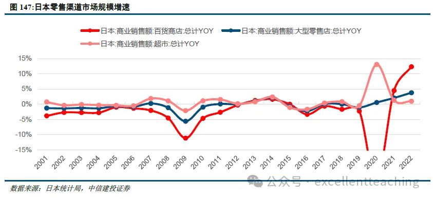 日本零售市场相对饱和,线下渠道整体没有增长。2000 年-2019 年日本百货商店销售额、大型零售店销售额、超市销售额复合增速分别为为-2.4%、-0.8%、0.2%。日本线下渠道中的超市维持小幅增长,百货销售额与大型零售点销售额均出现收缩。 数字化转型网www.szhzxw.cn